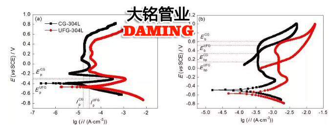 304不銹鋼極化曲線(xiàn),出現(xiàn)陽(yáng)極鈍化區(qū)